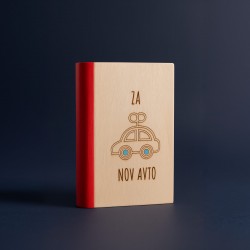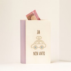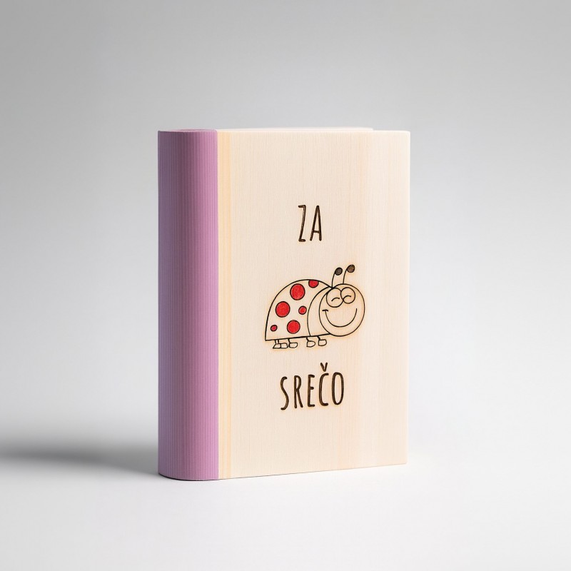 Izdelan iz naravnega lesa, z lasersko gravuro in ročno barvanimi detajli, zato je vsak kos malce drugačen – tako kot tisti, ki vanj meče kovance.