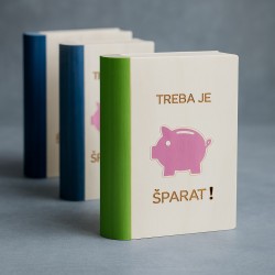 Na voljo z različnimi napisi: za srečo, avto, kavo, penzijo ... ali kar tisti legendarni »Treba je šparat!«
