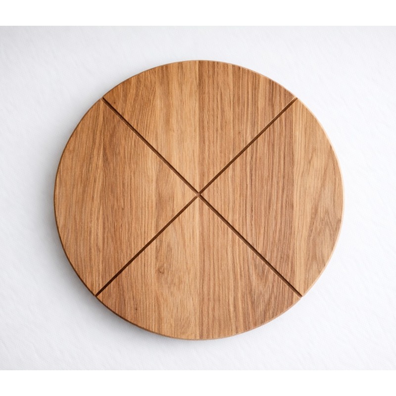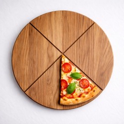Lesen pizza krožnik iz masivnega hrasta, z vrezanimi zarezami za lažje in enakomerno razdeljevanje pice.